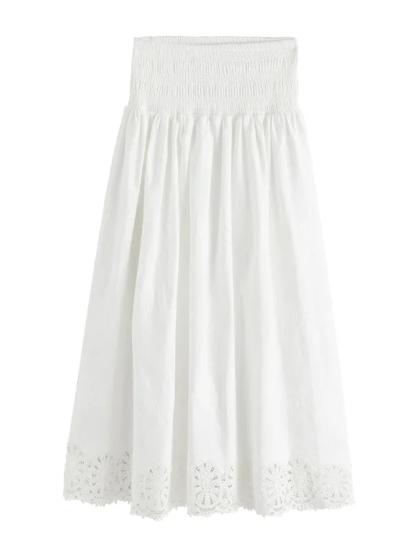 Design: Wijde taille; Materiaal: Katoen; Motief: Effen; Rokvorm: A-lijn rok; Details: Gedrapeerd; Extra's: Lichte stof; Lengte: Lang/maxi; Pasvorm: Normale pasvorm