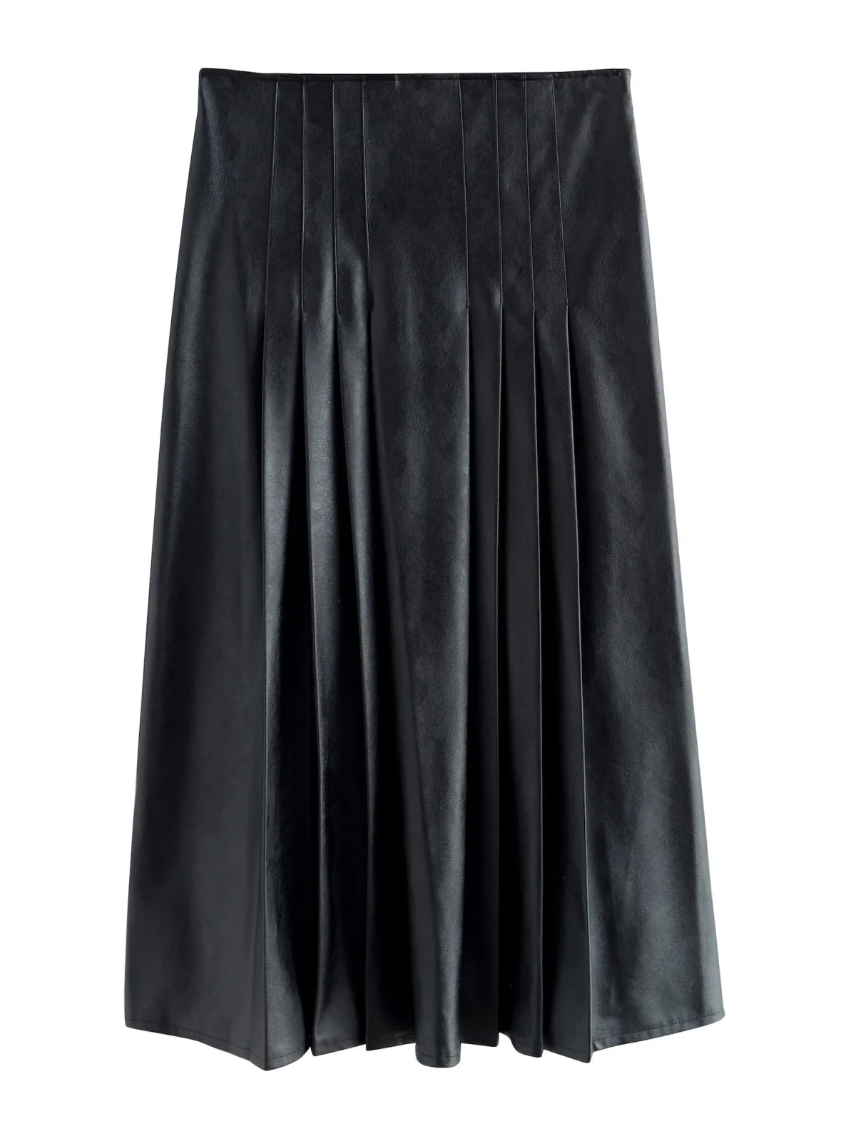 Design: Rechte zoom, Ritszakken aan de zijkant; Type sluiting: Ritssluiting; Materiaal: Imitatieleder; Motief: Effen; Rokvorm: Plooirok; Details: Plooien; Extra's: Vaste grip; Lengte: 3/4 lengte; Pasvorm: Normale pasvorm; Taillehoogte: Mid waist
