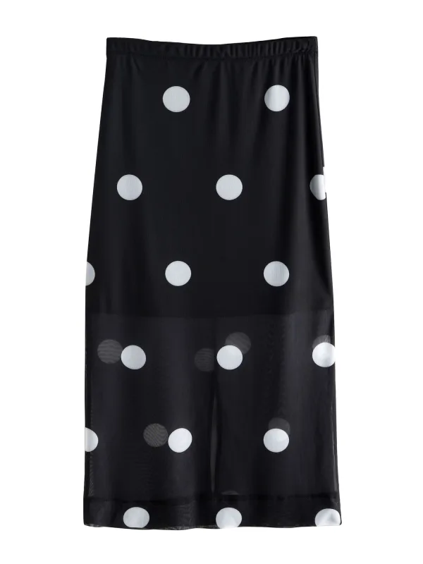Design: Gevoerde zoom/rand, Split; Materiaal: Gerecycled materiaal; Motief: Gestippeld; Rokvorm: Kokerrok; Details: Gedrapeerd; Extra's: All-over patroon; Lengte: 3/4 lengte; Pasvorm: Normale pasvorm
