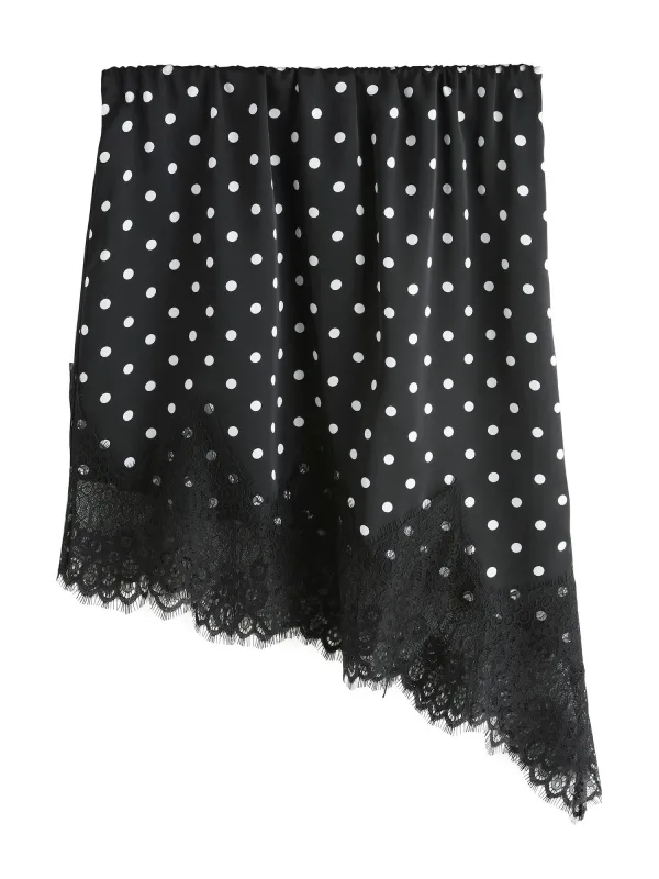 Design: Asymmetrische zoom; Materiaal: Gerecycled materiaal; Motief: Gestippeld; Details: Kant; Extra's: All-over patroon; Lengte: Kort/mini; Pasvorm: Normale pasvorm