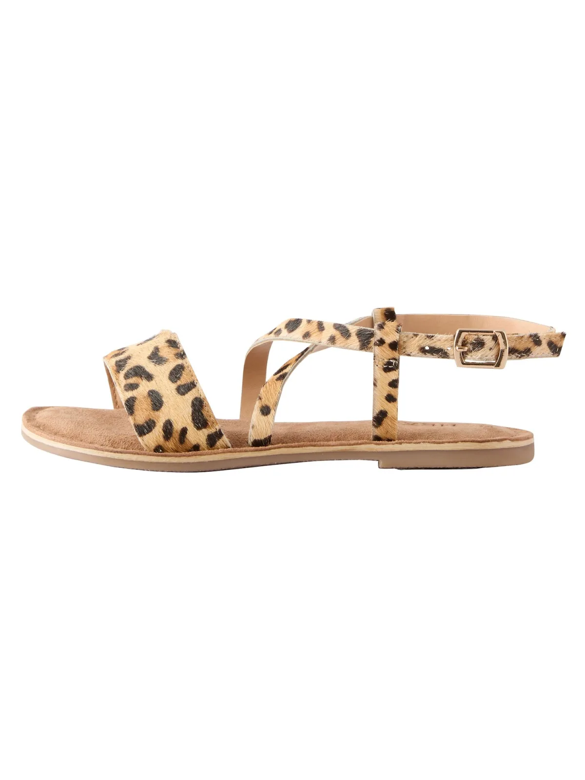 Design: Verstelbare riemen; Type sluiting: Riemsluiting; Materiaal: Leer; Motief: Dierenprint; Materiaal: Suède; Schoenneus: Open toe; Extra's: Flexibele zool; Hakhoogte: Platte hak (0-3 cm)