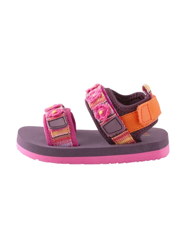 Design: Profielzolen, Lichte EVA-zool, Hielband; Type sluiting: Velcro sluiting; Motief: Bloemenprint; Materiaal: Textiel; Schoenneus: Open toe; Extra's: Applicaties, Flexibele zool, Wijdte verstelbaar; Hakhoogte: Platte hak (0-3 cm)