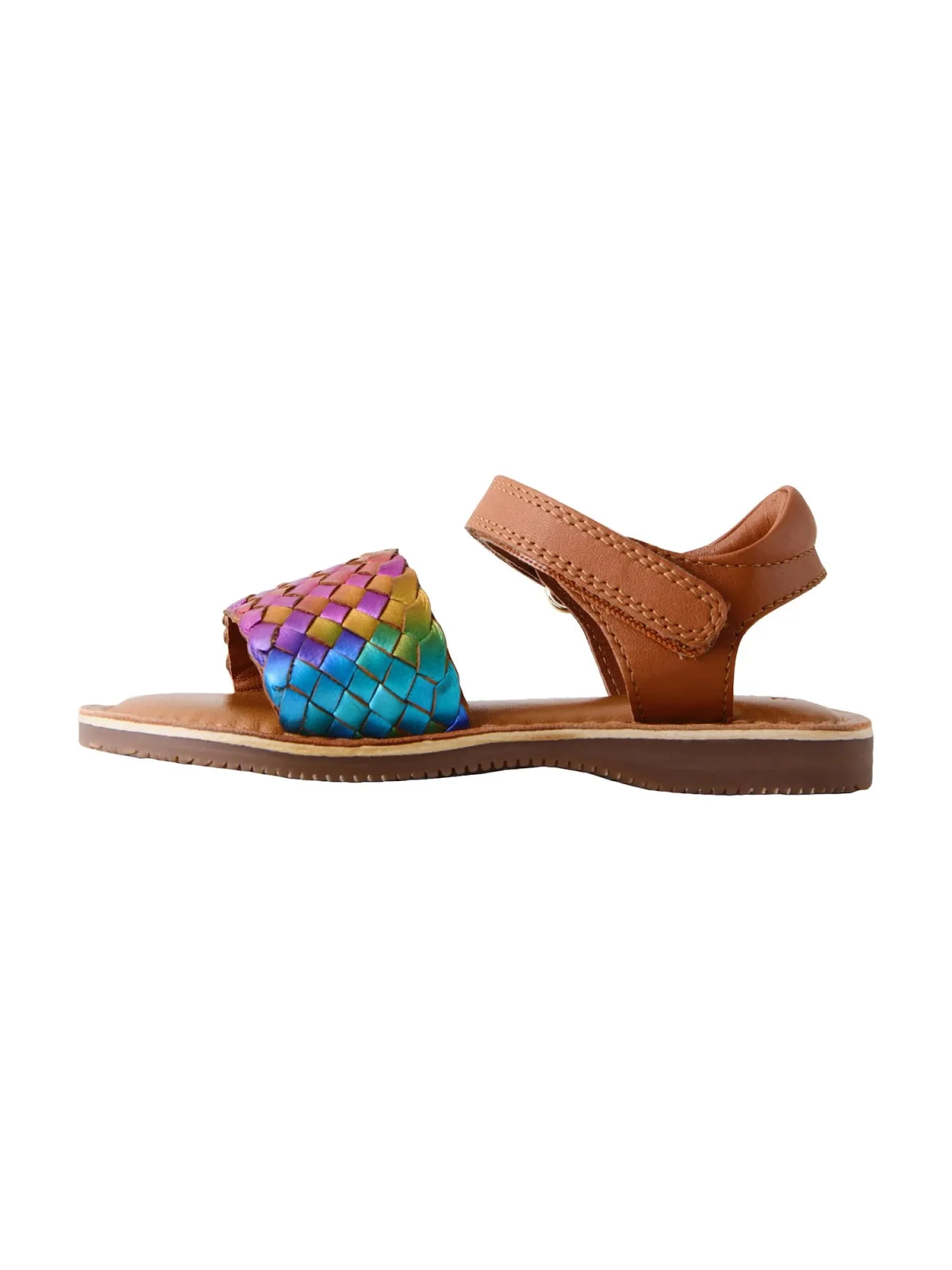 Design: Verstelbare riemen; Type sluiting: Velcro sluiting; Materiaal: Leer; Motief: Color-Blocking; Materiaal: Glad leer; Schoenneus: Open toe; Extra's: Gevlochten structuur; Hakhoogte: Platte hak (0-3 cm)