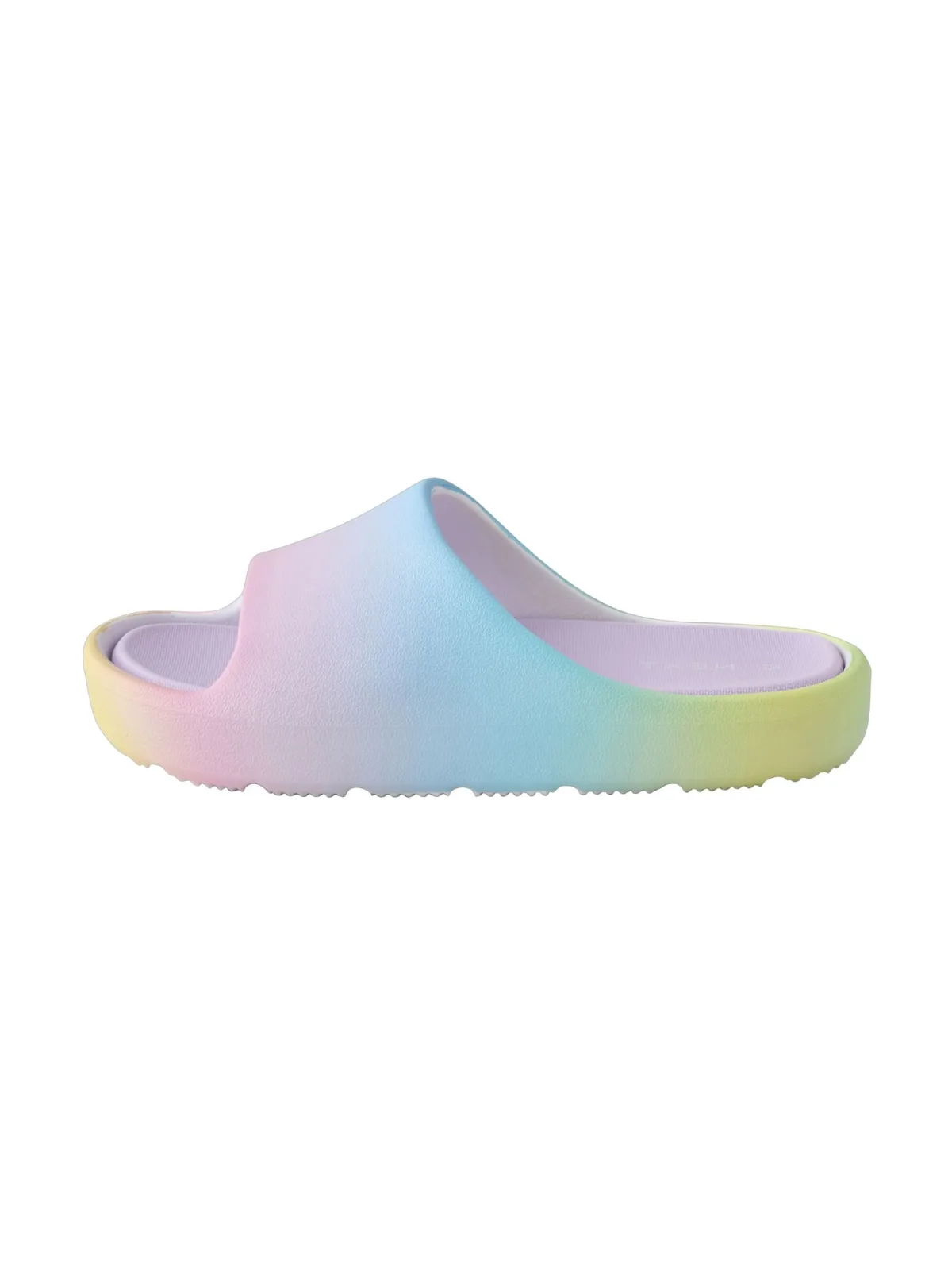 Design: Profielzolen; Type sluiting: Slip; Motief: Kleurverloop; Schoenneus: Open toe; Extra's: All-over patroon, Flexibele zool; Hakhoogte: Platte hak (0-3 cm)