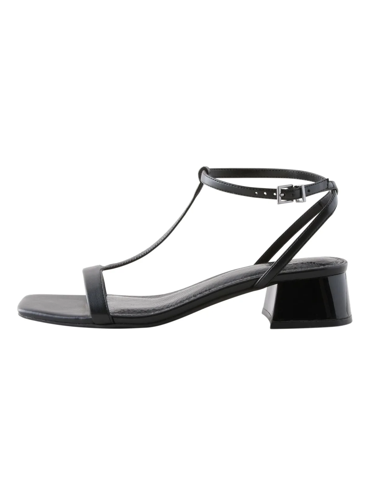 Design: Verstelbare riemen, T-strap; Type sluiting: Riemsluiting; Type hak: Blokhak; Materiaal: Imitatieleder; Motief: Effen; Materiaal: Imitatieleer; Schoenneus: Open toe; Extra's: Op staal naden, Gladde stof; Hakhoogte: Middelhoge hak (3-7 cm); Pasvorm van de schoenen: Breed
