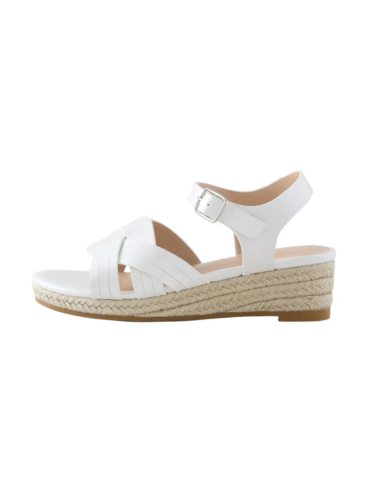Design: Hak/zool met raffia-look; Type sluiting: Riemsluiting; Type hak: Sleehak; Materiaal: Imitatieleder; Motief: Effen; Plateau: Met plateau; Materiaal: Imitatieleer; Schoenneus: Open toe; Extra's: Stevige stof; Hakhoogte: Middelhoge hak (3-7 cm)