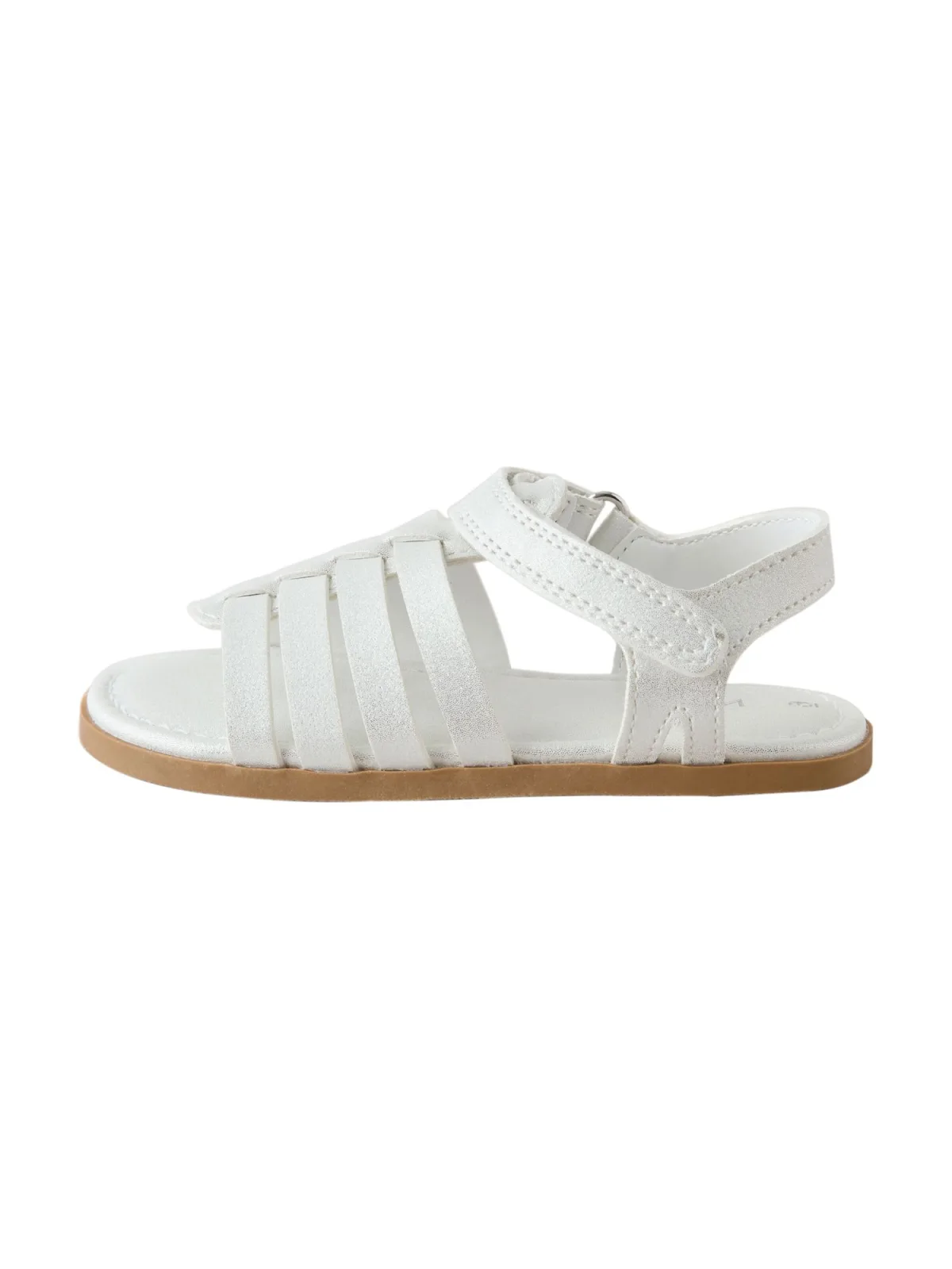 Design: Verstelbare riemen; Type sluiting: Velcro sluiting; Materiaal: Imitatieleder; Motief: Effen; Materiaal: Imitatieleer; Schoenneus: Open toe; Extra's: Glitterend, Flexibele zool; Hakhoogte: Platte hak (0-3 cm)