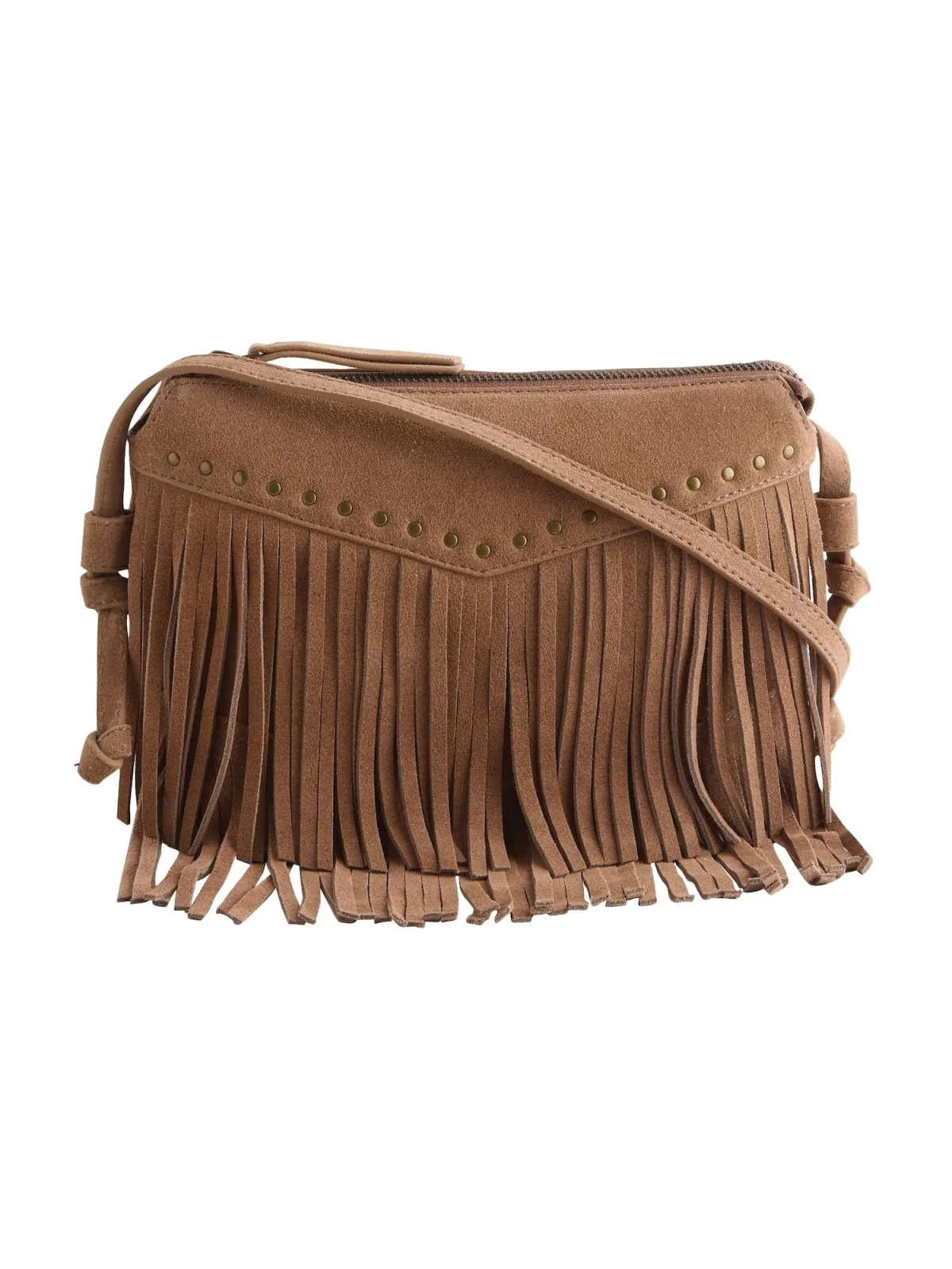 Design: Ritsvak binnen, Gefranjerde zoom; Type sluiting: Ritssluiting; Materiaal: Leer; Motief: Effen; Materiaal: Suède; Extra's: Studs, Buigzame grip; Hengsellengte: Lange schouderriemen