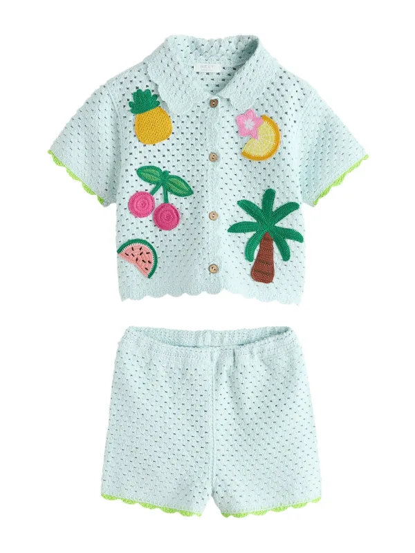 Design: Knop placket; Type sluiting: Knoopsluiting; Materiaal: Gehaakt; Extra's: Voelt zacht aan; Aantal per set: 2-delig; Lengte: Kort/mini; Setinhalt Kleidung: Hemd, Hose; Pasvorm: Normale pasvorm; Armlengte: Kwartmouw