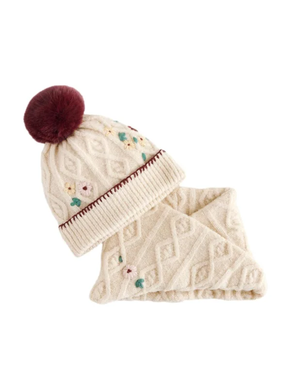 Design: Omgeslagen zoom, Pompoms; Materiaal: Knitwear; Motief: Bloemenprint; Extra's: Patroon gebreid, Fully fashioned; Aantal per set: 2-delig