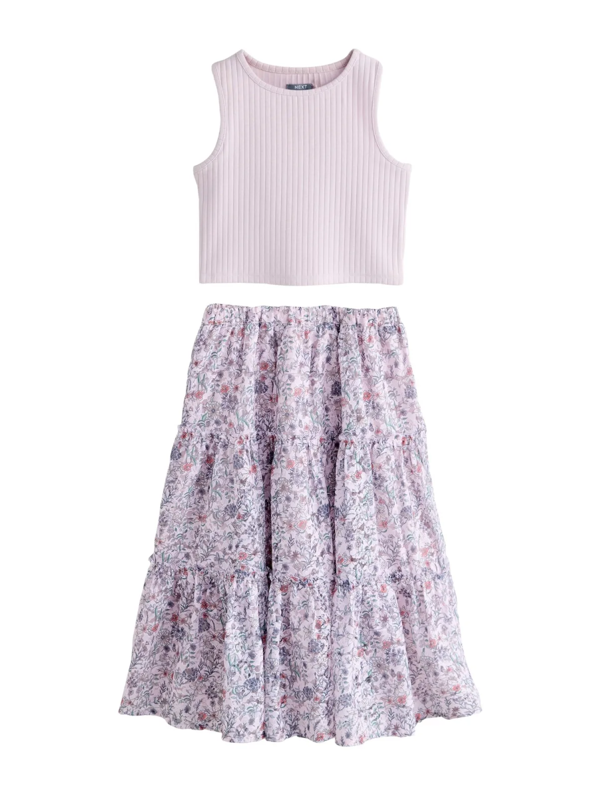 - De laagste prijs van Next Set bestaande uit een geribbeld vest en een midi-rok met bloemenprint en kant werd gevonden op 26 april 2026 17:28.