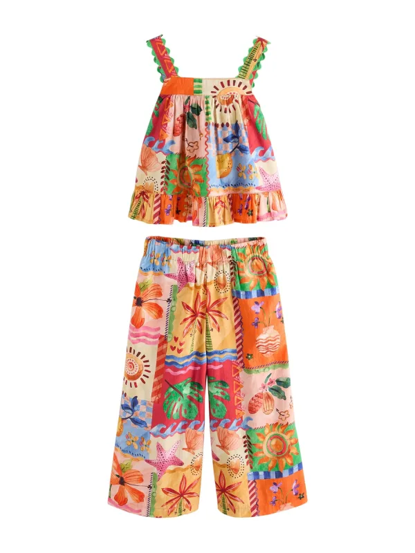 Design: Gevoerde zoom/rand, Elastische taille/zoom; Materiaal: Katoen; Extra’s: All-over patroon; Aantal per set: 2-delig; Lengte: Lang/maxi; Setinhalt Kleidung: Shirt, Hose; Pasvorm: Normale pasvorm; Armlengte: Mouwloos