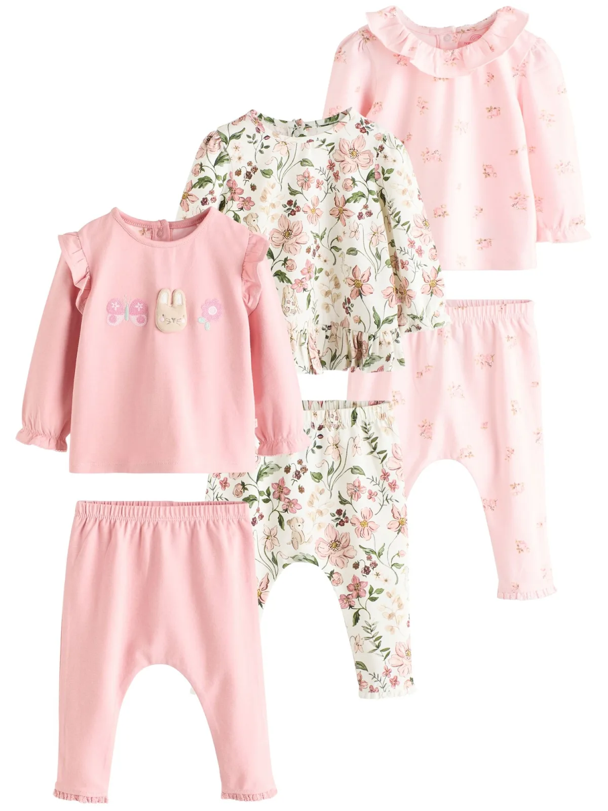 Design: Elastische taille/zoom; Type sluiting: Drukknoop; Materiaal: Jersey; Motief: Bloemenprint; Extra's: Applicaties, Voelt zacht aan; Aantal per set: 6-delig; Lengte: Lang/maxi; Setinhalt Kleidung: Shirt, Hose; Pasvorm: Normale pasvorm; Aantal: 3 Pack; Armlengte: Lange mouw
