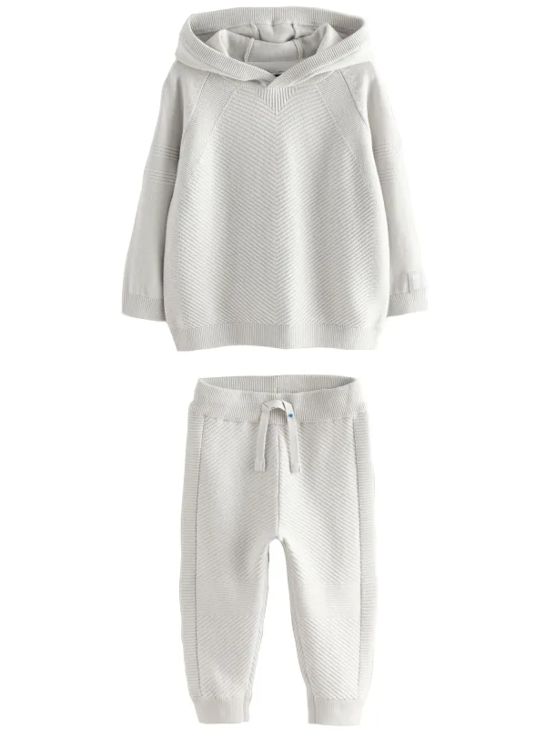 Design: Taille met trekkoord, Elastische taille/zoom, Met capuchon, Raglanmouwen, Geribd ceintuurtje; Materiaal: Knitwear; Motief: Effen; Extra's: Label patch/label flag, Met textuur; Aantal per set: 2-delig; Lengte: Lang/maxi; Setinhalt Kleidung: Sweatshirt, Hose; Armlengte: Lange mouw