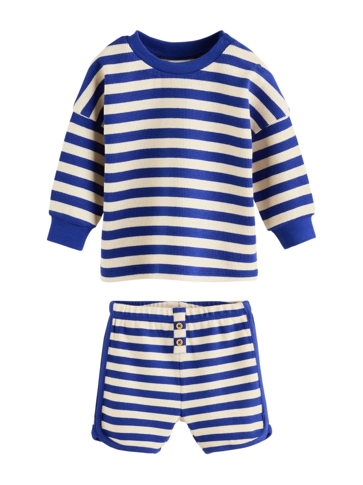 Design: Placket, Geribbelde kraag, Drukknopen; Materiaal: Katoen; Motief: Gestreept; Extra's: All-over patroon, Met textuur, Voelt zacht aan; Aantal per set: 2-delig; Lengte: Kort/mini; Setinhalt Kleidung: Shirt, Hose; Armlengte: Lange mouw