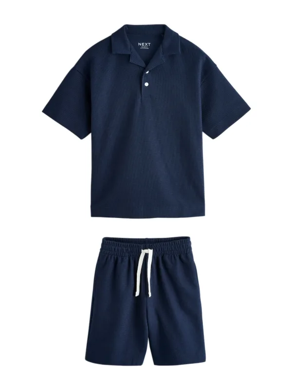 Next Set van getextureerd poloshirt met korte mouwen en short
