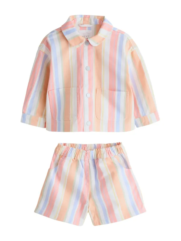 Design: Knop placket, Opgezette zakken, Knop sluiting; Type sluiting: Elastische band; Materiaal: Katoen; Motief: Gestreept; Extra's: All-over patroon; Aantal per set: 2-delig; Lengte: Kort/mini; Pasvorm: Normale pasvorm; Aantal: 2 Pack; Armlengte: Lange mouw