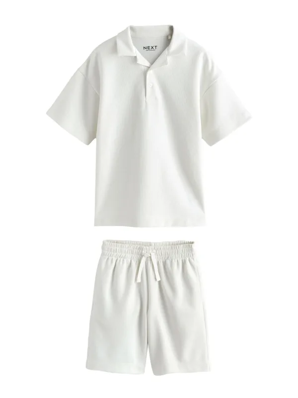 Next Set van getextureerd poloshirt met korte mouwen en short