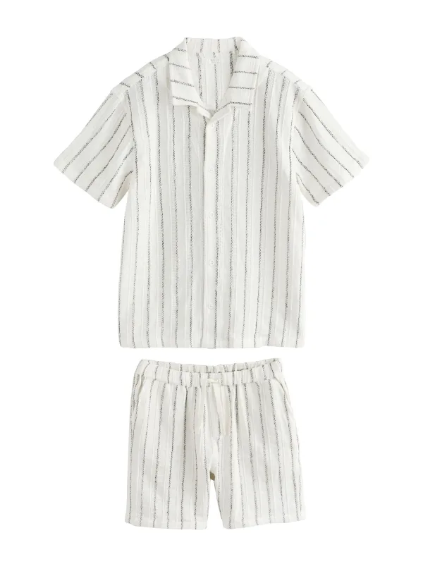 - De laagste prijs van Next Set met korte mouwen gestructureerd overhemd met strepen en korte broek werd gevonden op 26 april 2026 07:25.