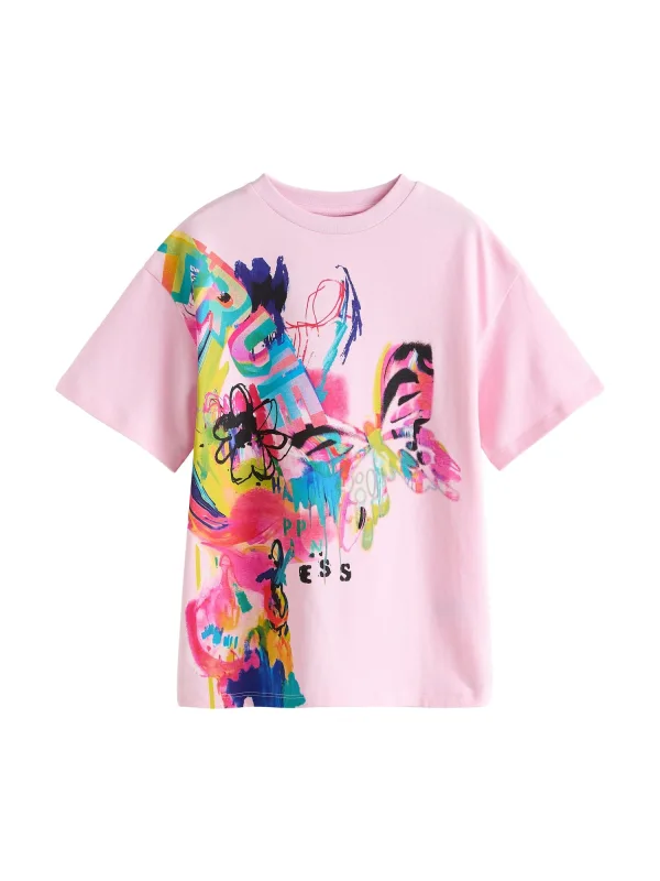 Design: Gevoerde zoom/rand, Nektape; Materiaal: Jersey; Halstype: Ronde hals; Motief: Motiefprint; Extra's: Voelt zacht aan; Pasvorm: Losse pasvorm; Armlengte: Halve mouw; Lengte: Normale lengte