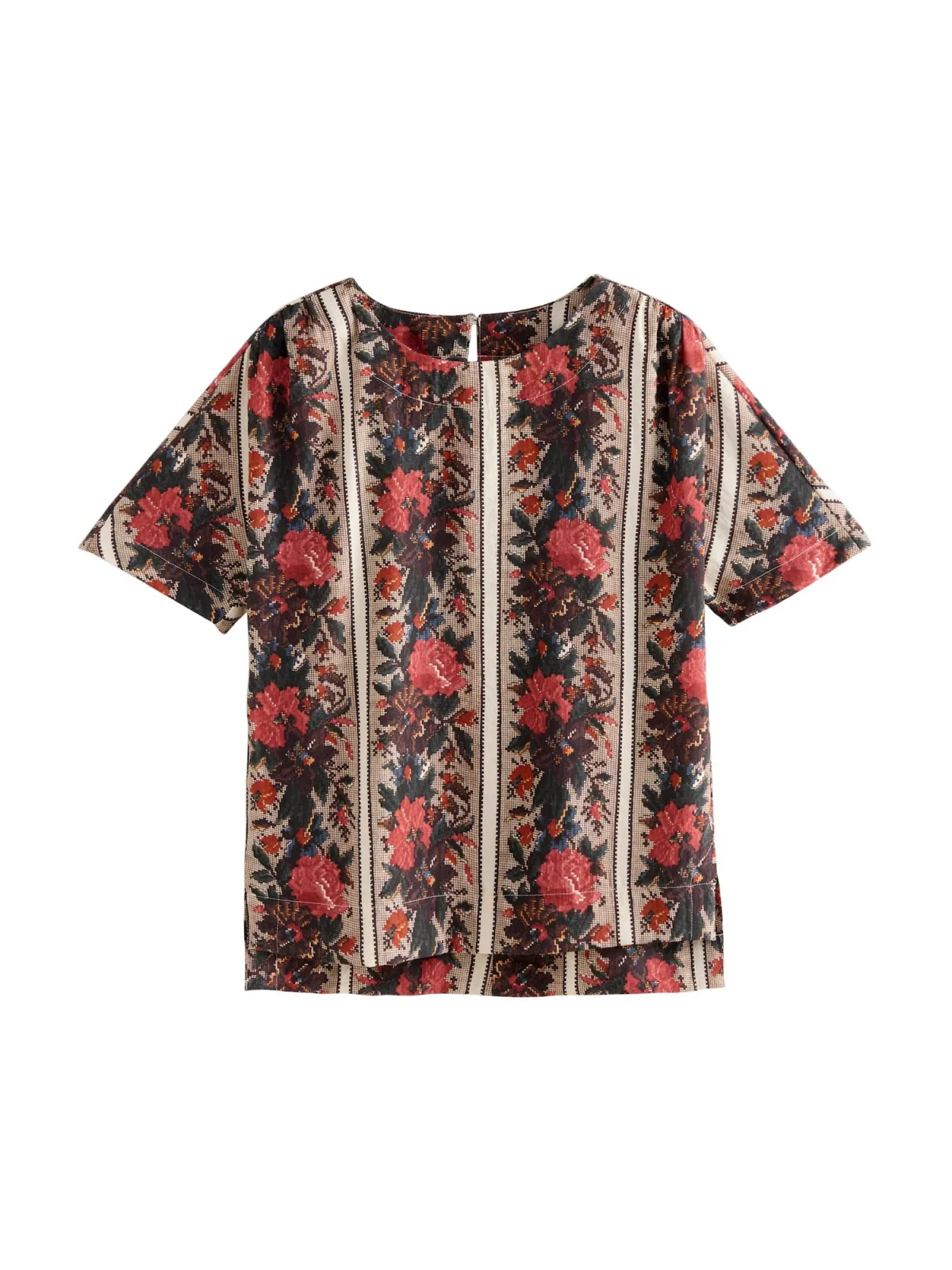 Design: Keyholesluiting, Verlengd rugpand; Type sluiting: Knoopsluiting; Materiaal: Jersey; Halstype: Ronde hals; Extra's: All-over patroon; Pasvorm: Normale pasvorm; Armlengte: Kwartmouw; Lengte: Normale lengte