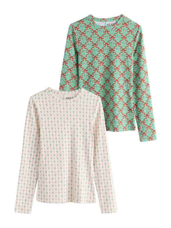 Design: Gevoerde zoom/rand, Geribbeld gebreid; Materiaal: Jersey; Halstype: Ronde hals; Extra's: All-over patroon, Kerstdesign; Pasvorm: Normale pasvorm; Aantal: 2 Pack; Armlengte: Lange mouw; Lengte: Normale lengte