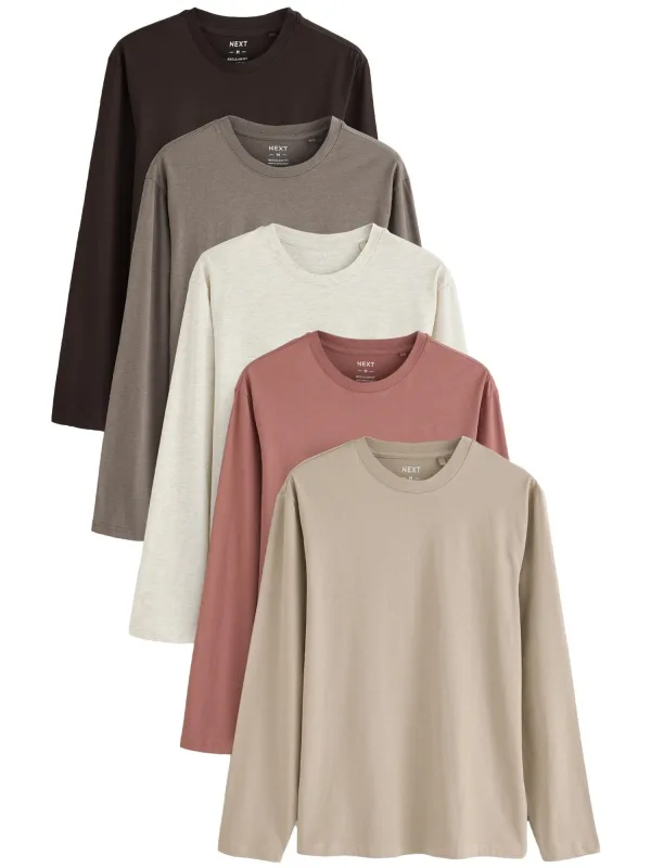 Next Normale Pasvorm verpakking van 5 regularfit Tshirts met lange...