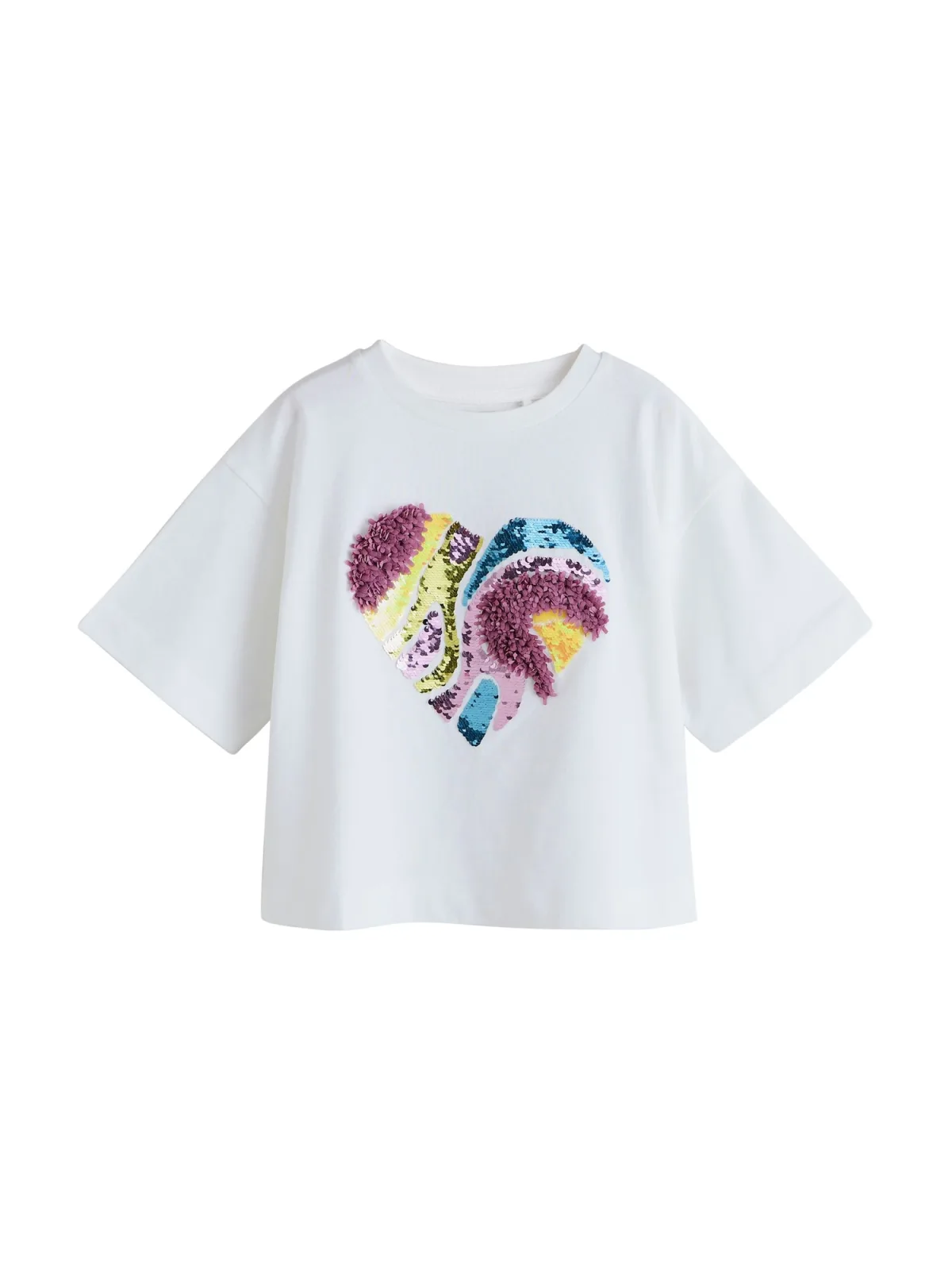 Design: Gevoerde zoom/rand; Materiaal: Jersey; Halstype: Ronde hals; Motief: Motiefprint; Details: Pailletten; Extra's: Voelt zacht aan; Pasvorm: Normale pasvorm; Armlengte: Kwartmouw; Lengte: Normale lengte