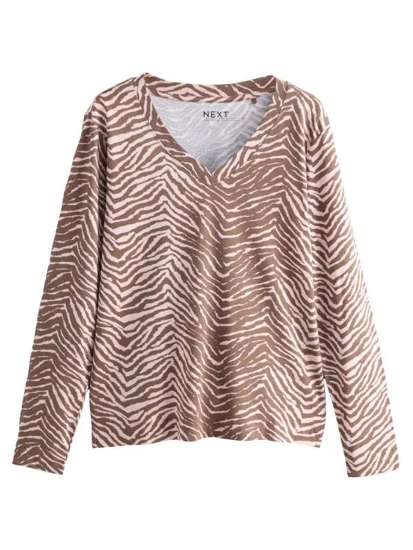 Design: Gevoerde zoom/rand; Materiaal: Jersey; Halstype: V-hals; Extra's: All-over patroon; Pasvorm: Normale pasvorm; Armlengte: Lange mouw; Lengte: Normale lengte