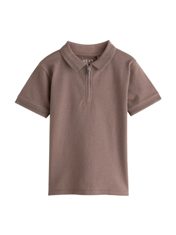 Next Getextureerd poloshirt met korte mouwen en rits aan de...