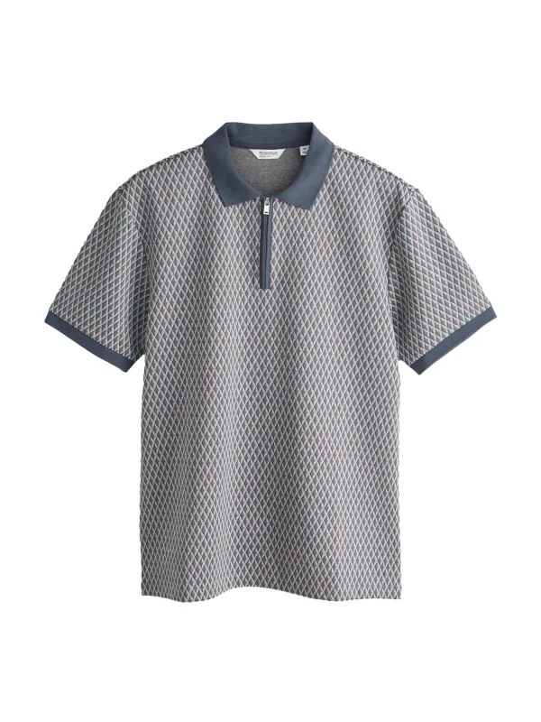 Design: Geribbelde kraag, Geribd ceintuurtje; Type sluiting: Ritssluiting; Materiaal: Katoen; Halstype: Polokraag; Extra's: All-over patroon, Voelt zacht aan; Pasvorm: Normale pasvorm; Armlengte: Kwartmouw; Lengte: Normale lengte