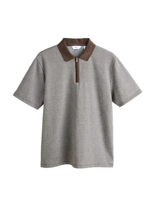 Design: Gevoerde zoom/rand, Turn-down kraag, Halve rits; Type sluiting: Ritssluiting; Materiaal: Jersey; Halstype: Polokraag; Motief: Geruit; Extra's: All-over patroon, Voelt zacht aan; Pasvorm: Normale pasvorm; Armlengte: Kwartmouw; Lengte: Normale lengte