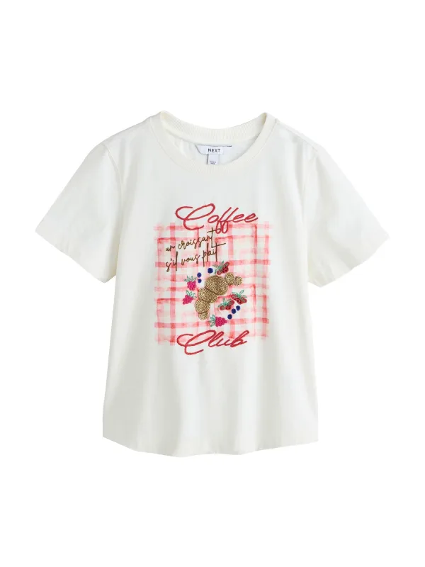 Next Shirt ‘Coffee Club’ ecru / goud / pink / rood Prijzen