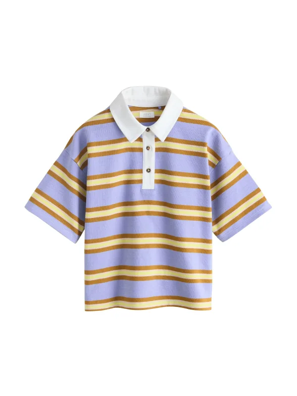 Design: Gevoerde zoom/rand; Type sluiting: Knoopsluiting; Materiaal: Jersey; Halstype: Polokraag; Motief: Gestreept; Extra's: All-over patroon; Pasvorm: Losse pasvorm; Armlengte: Halve mouw; Lengte: Lange pasvorm