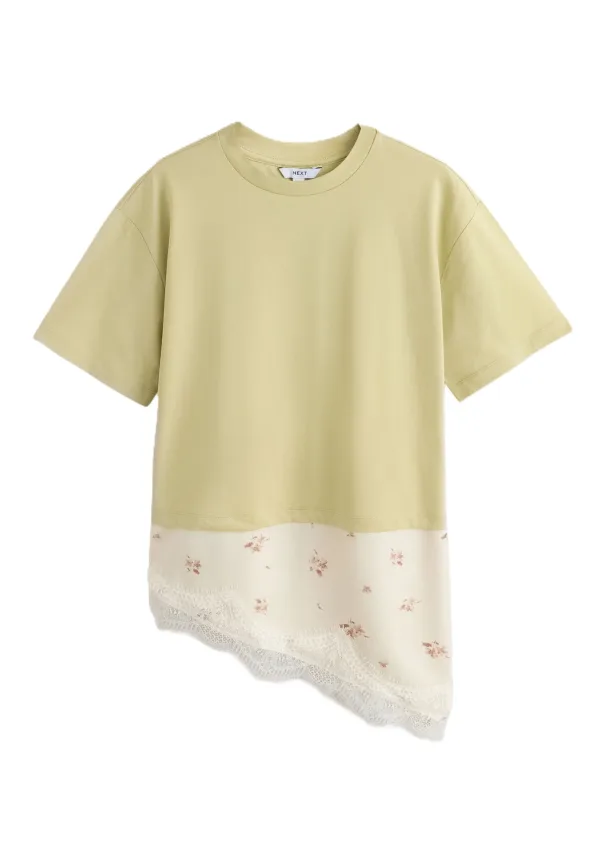 Design: Asymmetrische zoom, Gelaagde look; Materiaal: Jersey; Halstype: Ronde hals; Motief: Bloemenprint; Details: Kant; Extra's: Voelt zacht aan; Pasvorm: Losse pasvorm; Armlengte: Kwartmouw; Lengte: Lange pasvorm