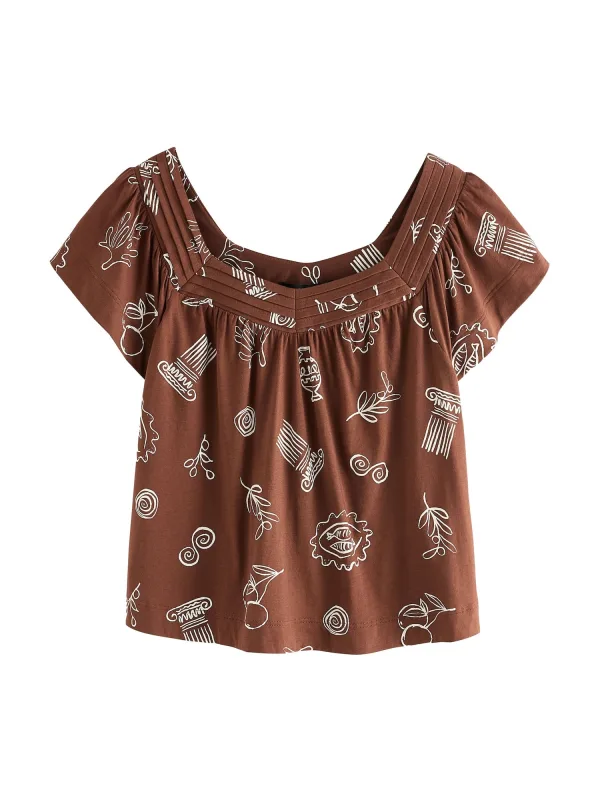 Next Shirt crème / chocoladebruin