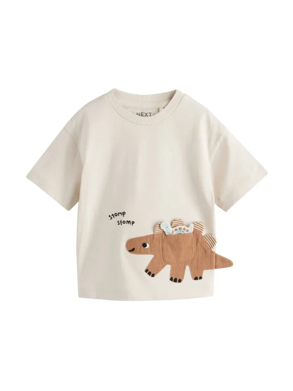 Design: Geribbelde kraag, Nektape; Materiaal: Jersey; Halstype: Ronde hals; Motief: Motiefprint; Extra's: Applicaties; Pasvorm: Normale pasvorm; Armlengte: Halve mouw
