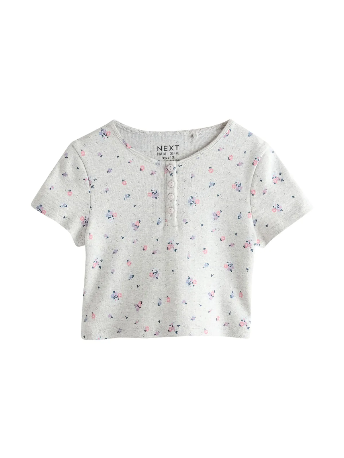 Design: Gevoerde zoom/rand; Type sluiting: Knoopsluiting; Materiaal: Jersey; Halstype: Henley hals; Motief: Bloemenprint; Details: Mesh; Extra's: All-over patroon; Pasvorm: Normale pasvorm; Armlengte: Kwartmouw; Lengte: Korte pasvorm