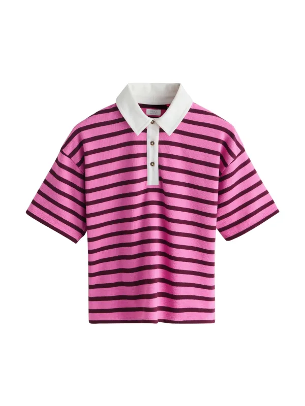 Design: Gevoerde zoom/rand, Placket; Type sluiting: Knoopsluiting; Materiaal: Jersey; Halstype: Polokraag; Motief: Gestreept; Extra's: All-over patroon; Pasvorm: Losse pasvorm; Armlengte: Halve mouw; Lengte: Lange pasvorm