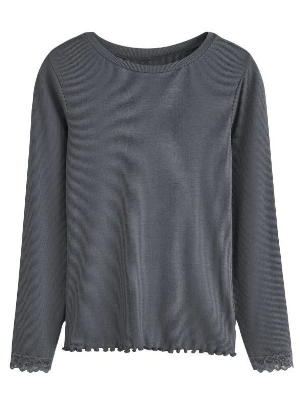 Design: Geschulpte zoom; Materiaal: Jersey; Halstype: Ronde hals; Motief: Effen; Details: Kant; Extra's: Thermo-wattering, Voelt zacht aan; Pasvorm: Aansluitende pasvorm; Armlengte: Lange mouw; Lengte: Normale lengte