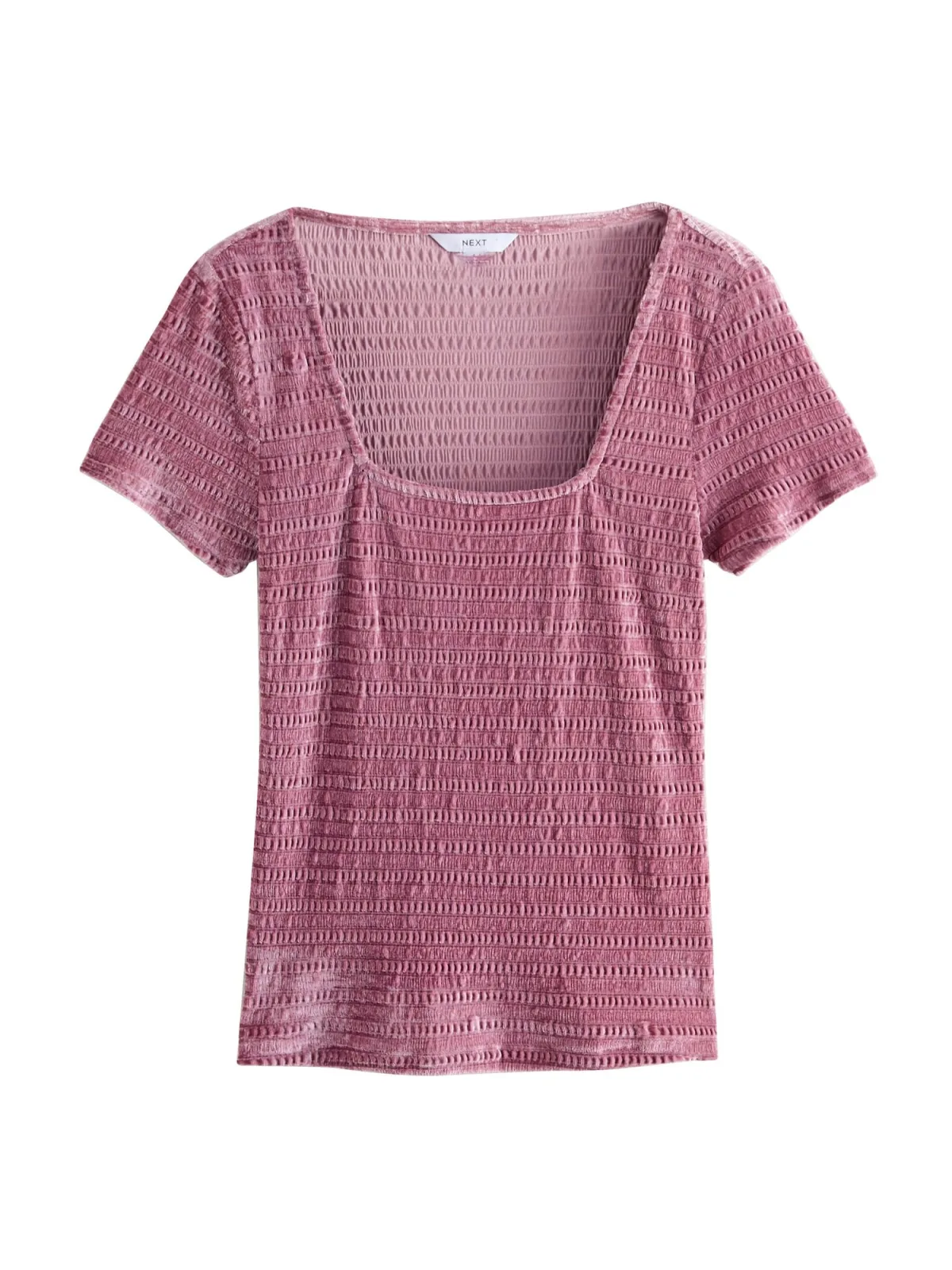 Next Gerimpelde fluwelen top met korte mouwen en vierkante hals