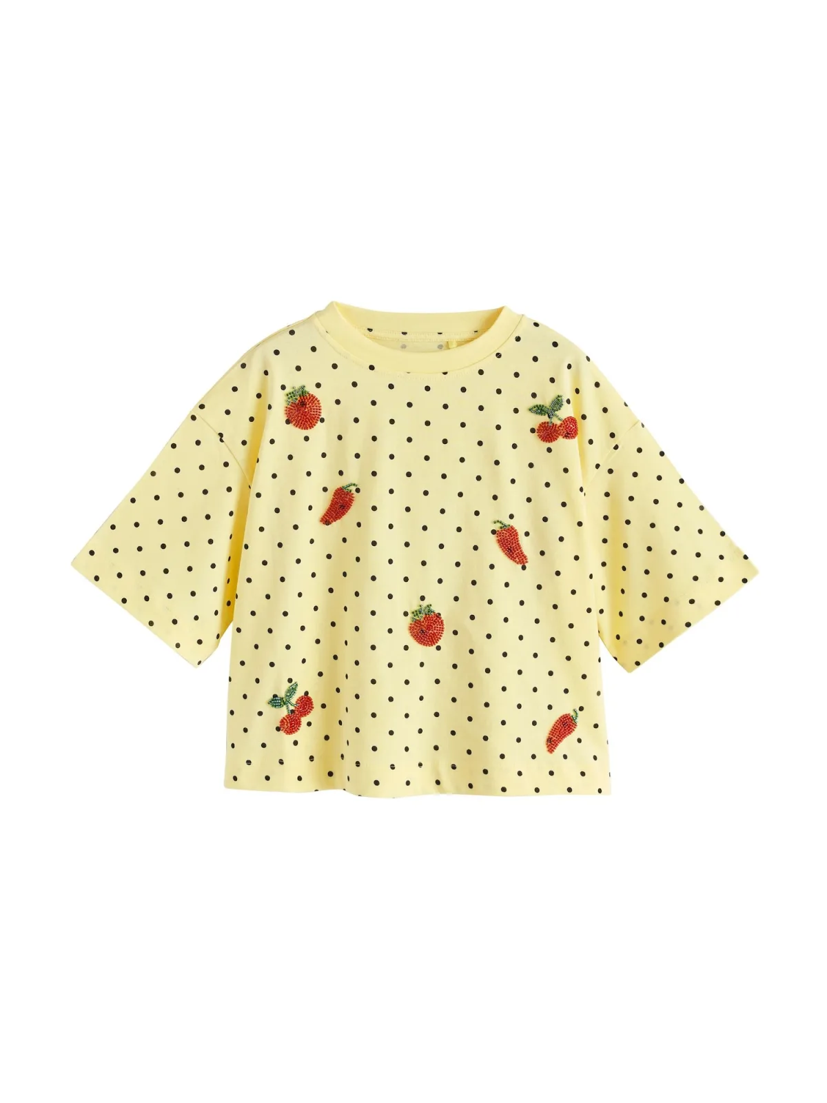 Design: Gevoerde zoom/rand, Geribbelde kraag; Materiaal: Jersey; Halstype: Ronde hals; Motief: Gestippeld; Details: Sierstenen; Extra's: All-over patroon, Huidvriendelijk materiaal; Pasvorm: Normale pasvorm; Armlengte: Kwartmouw; Lengte: Normale lengte