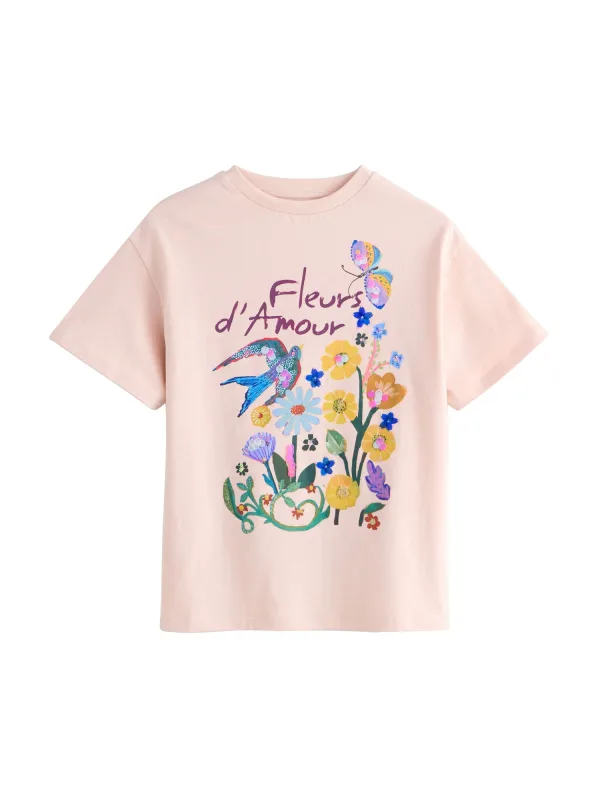 Design: Geribbelde kraag; Materiaal: Jersey; Halstype: Ronde hals; Motief: Motiefprint; Details: Pailletten; Extra's: Voelt zacht aan; Pasvorm: Normale pasvorm; Armlengte: Kwartmouw; Lengte: Normale lengte