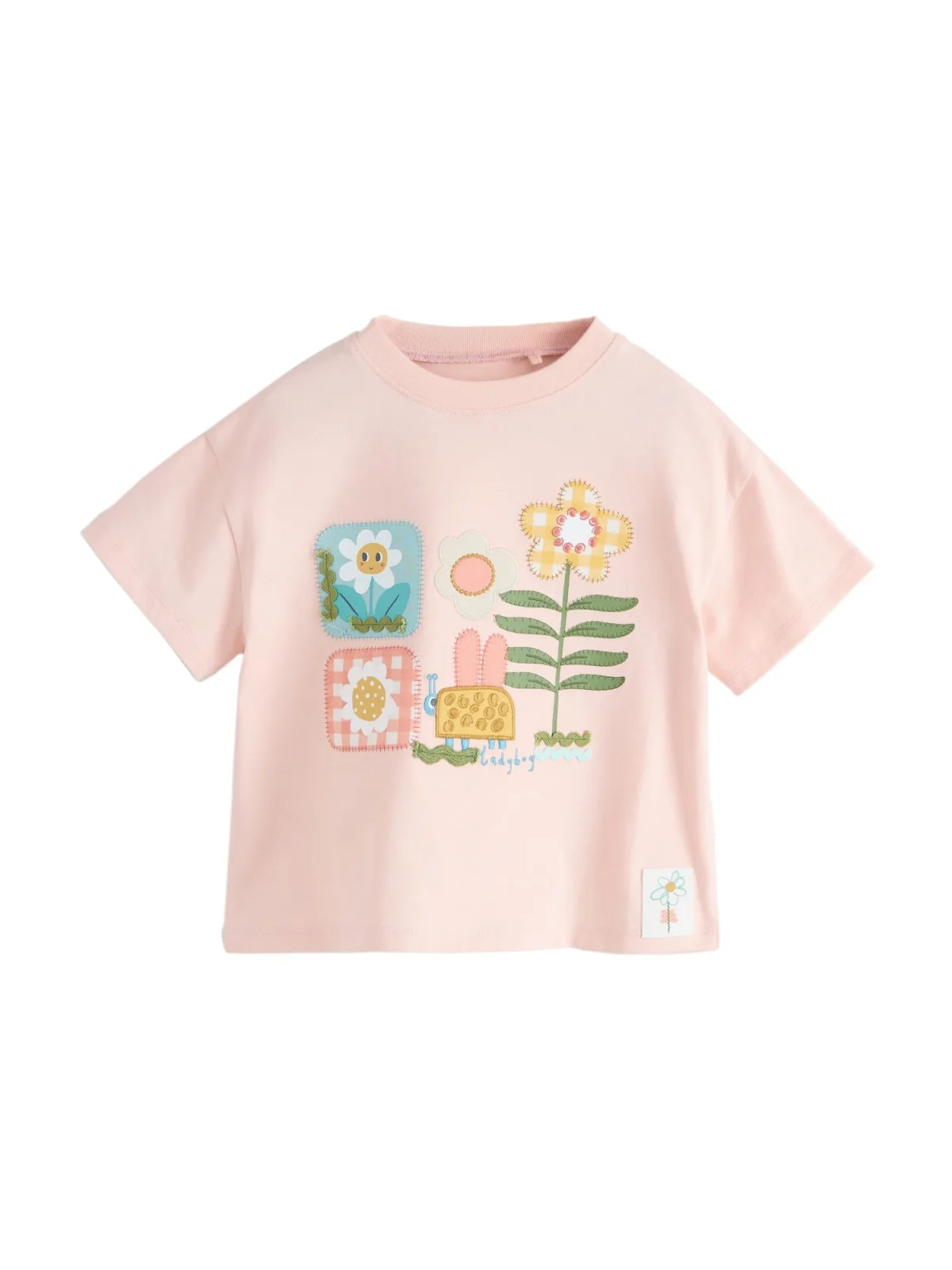 Design: Geribbelde kraag, Overcut schouder; Materiaal: Jersey; Halstype: Ronde hals; Motief: Bloemenprint; Details: Borduursels; Extra's: Applicaties, Op staal naden; Pasvorm: Losse pasvorm; Armlengte: Kwartmouw; Lengte: Normale lengte