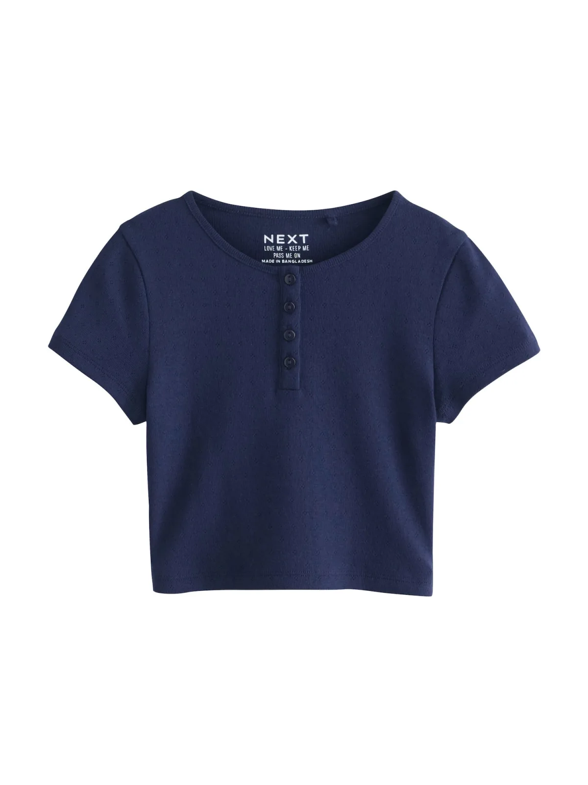 Design: Rechte zoom, Knop placket; Type sluiting: Knoopsluiting; Materiaal: Jersey; Halstype: Henley hals; Motief: Effen; Details: Mesh; Extra's: Op staal naden, Voelt zacht aan; Pasvorm: Normale pasvorm; Armlengte: Kwartmouw; Lengte: Normale lengte
