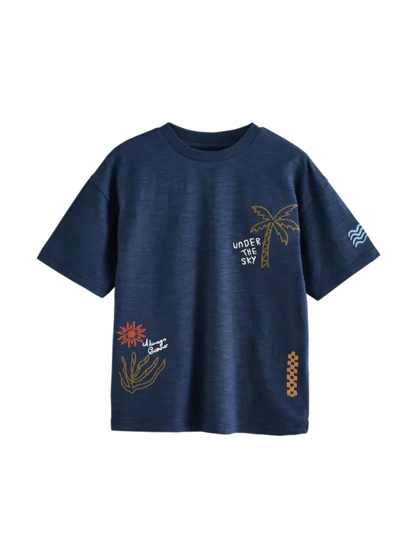 Design: Gevoerde zoom/rand, Geribbelde kraag, Overcut schouder; Materiaal: Jersey; Halstype: Ronde hals; Motief: Motiefprint; Extra's: Applicaties, Met textuur, Voelt zacht aan; Pasvorm: Losse pasvorm; Armlengte: Halve mouw