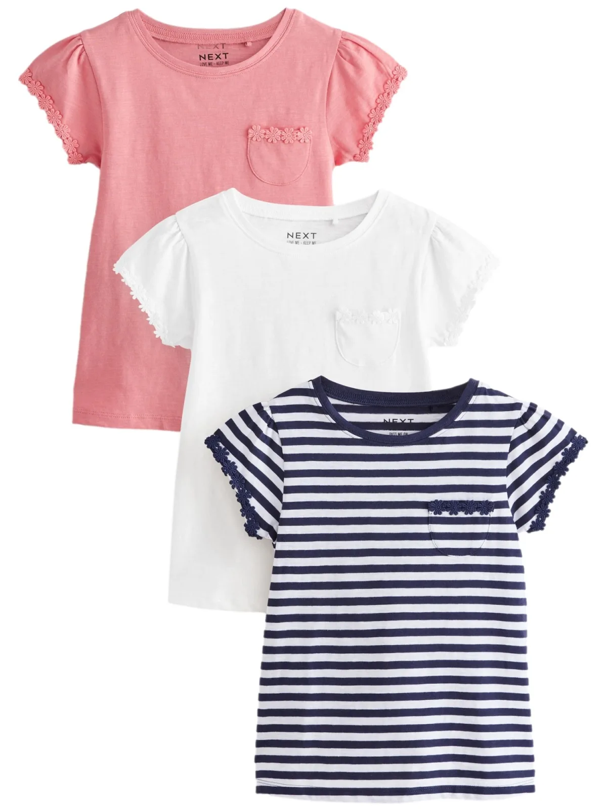 Design: Pofmouwen; Materiaal: Jersey; Halstype: Ronde hals; Details: Kant; Extra's: Voelt zacht aan; Pasvorm: Normale pasvorm; Aantal: 3 Pack; Armlengte: Kwartmouw; Lengte: Normale lengte