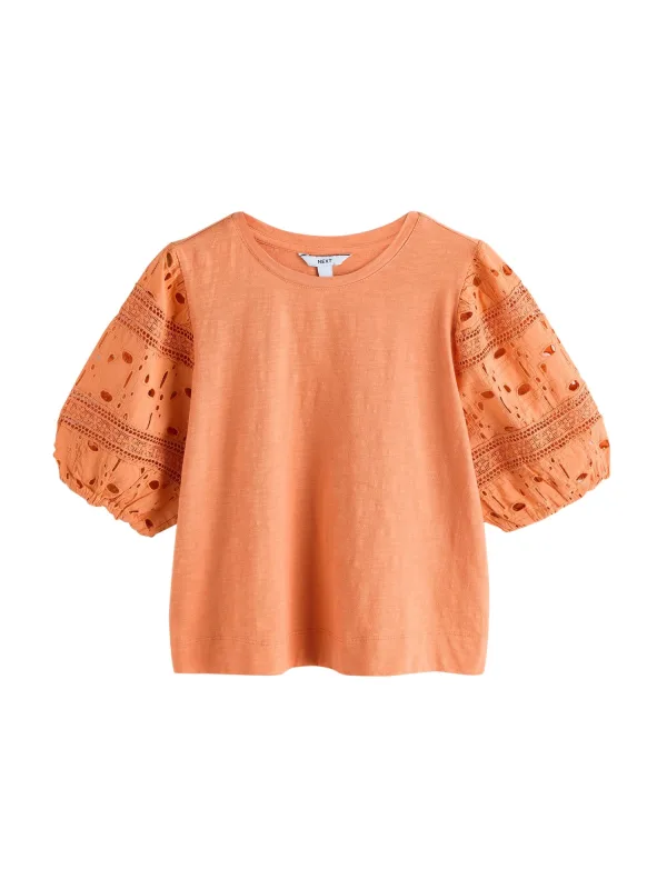 Design: Gevoerde zoom/rand, Geribbelde kraag, Pofmouwen; Materiaal: Jersey; Halstype: Ronde hals; Motief: Mélange; Details: Kant, Borduursels, Gedrapeerd, Mesh; Extra's: Applicaties, Voelt zacht aan; Pasvorm: Normale pasvorm; Armlengte: Halve mouw; Lengte: Normale lengte