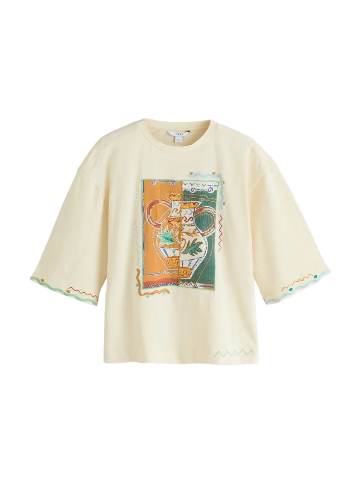 Design: Gevoerde zoom/rand, Geribbelde kraag, Overcut schouder, Contrasterende inserts; Materiaal: Jersey; Halstype: Ronde hals; Motief: Motiefprint; Details: Borduursels; Extra's: Op staal naden, Voelt zacht aan; Pasvorm: Losse pasvorm; Armlengte: Halve mouw; Lengte: Normale lengte