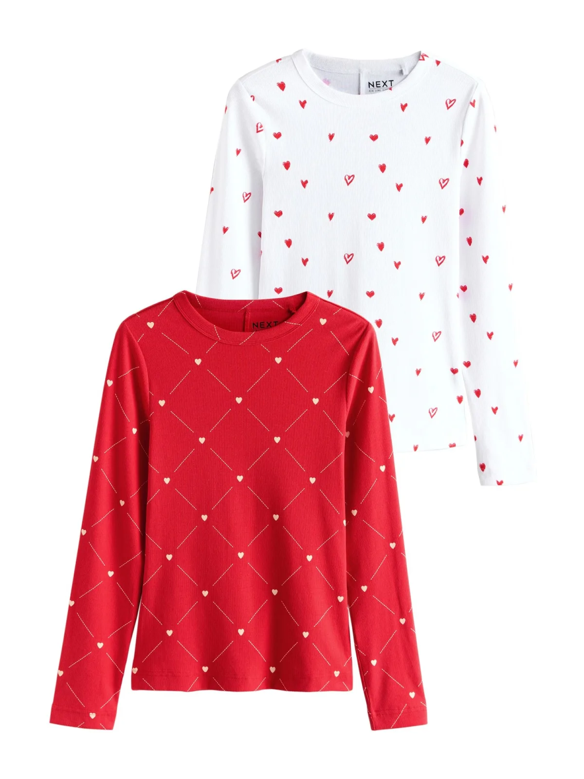 Next Set van 2 tops met lange mouwen Valentijnshartprint en...